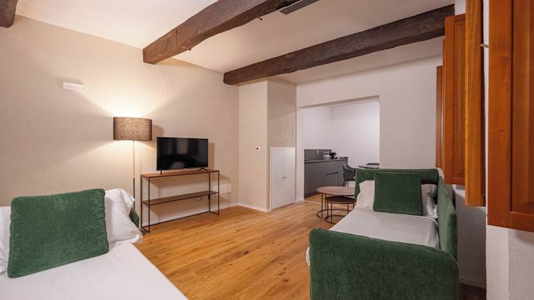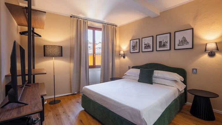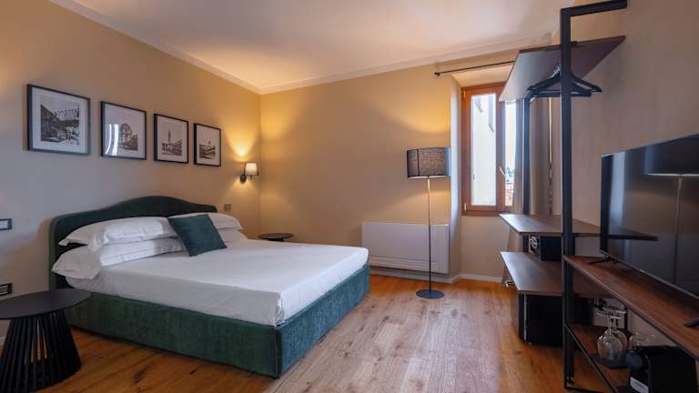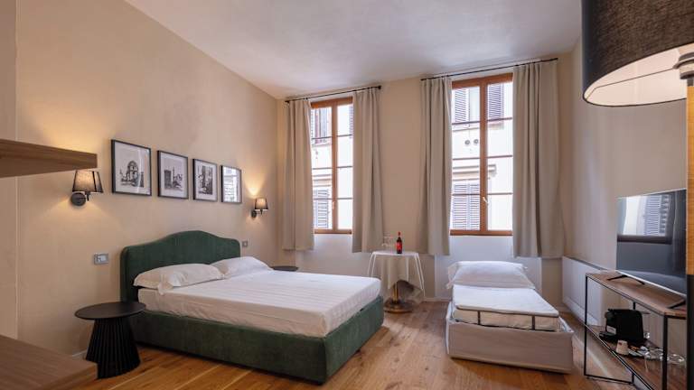 Die Zimmer in der Palazzina Fusi sind klimatisiert und verfügen über einen Schreibtisch, eine Kaffeemaschine, eine Minibar, einen Safe und einen Flachbild-TV. Jedes Zimmer besitzt ein eigenes Badezimmer mit einem Bidet. Einige Zimmer sind zusätzlich mit einer Küchenzeile ausgestattet, die einen Kühlschrank und eine Herdplatte umfasst. Alle Gästezimmer bieten einen Kleiderschrank.
