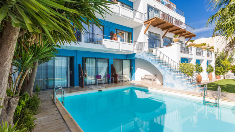 Das Hotel Palazzo Greco in Agia Galini auf Kreta bietet seinen Gästen einen erstklassigen Aufenthalt mit eleganter Ausstattung und einem atemberaubenden Blick auf das Mittelmeer und die Berge von Ideon. Genießen Sie den Außenpool und die komfortablen Zimmer, die im charmanten Stil eines Boutique-Hotels gestaltet sind. Das Hotel bietet zudem kostenfreie Privatparkplätze und WLAN. Die Lage des Hotels ist ideal, nur wenige Gehminuten vom Strand entfernt und eine kurze Fahrt vom Flughafen Heraklion entfernt. Erkunden Sie die archäologischen Stätten der Umgebung und lassen Sie sich von den Restaurants und Bars in Agia Galini verwöhnen.
