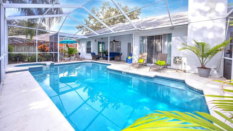 Das #3 Large 4 Bedroom 3 Bathroom Vacation House With Heated Swimming Pool bietet geräumige und komfortable Unterkünfte für Ihren Aufenthalt. Mit 4 klimatisierten Schlafzimmern, einem Essbereich und einer voll ausgestatteten Küche haben Sie alles, was Sie für einen angenehmen Aufenthalt benötigen. Das Haus verfügt auch über eine Terrasse, auf der Sie die warmen Tage genießen können. Handtücher und Bettwäsche werden gestellt, um Ihren Aufenthalt noch bequemer zu machen.