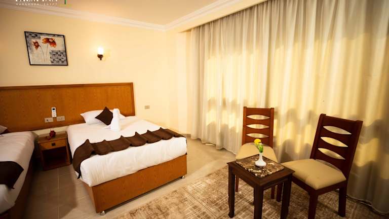 Das Palm Inn Hotel befindet sich in Hurghada und ist nur ca. 50 m vom Strand entfernt. Der Flughafen ist etwa 3 km und das Stadtzentrum ca. 500 m vom Hotel entfernt. Der Bahnhof liegt in einer Entfernung von etwa 1,5 km.