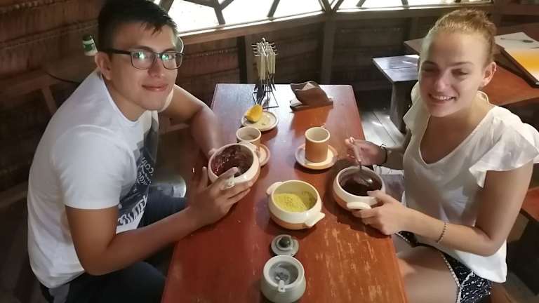 Genießen Sie ein köstliches amerikanisches Frühstück im Hotel Palmayacu - Refugio Amazónico. Starten Sie gut gestärkt in den Tag und probieren Sie die verschiedenen Speisen, die Ihnen angeboten werden. Die Gemeinschaftsküche steht Ihnen ebenfalls zur Verfügung, falls Sie Ihre eigenen Mahlzeiten zubereiten möchten.