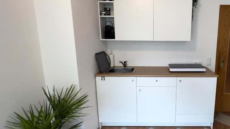 Das Apartment verfügt über 1 Schlafzimmer, einen Flachbild-TV, eine gut ausgestattete Küchenzeile mit Kühlschrank und Mikrowelle sowie ein Badezimmer mit Badewanne.
