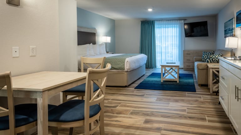 Die Suiten sind geräumig und mit Klimaanlage sowie Heizung ausgestattet. In den meisten Zimmern sind Balkone vorhanden. Die Zimmer verfügen über ein Sofabett, einen Safe, einen Kühlschrank, einen Herd, eine Mikrowelle, eine Tee-/Kaffeemaschine und einen Geschirrspüler. Zur Ausstattung gehören zudem ein Telefon, SAT-TV, ein DVD-Player und WLAN. Die Badezimmer sind mit einer Dusche, einem Haartrockner und kosmetischen Artikeln ausgestattet. Es gibt rollstuhlgerechte Zimmer mit barrierefreiem Badezimmer. Familien- und Nichtraucherzimmer stehen ebenfalls zur Verfügung.