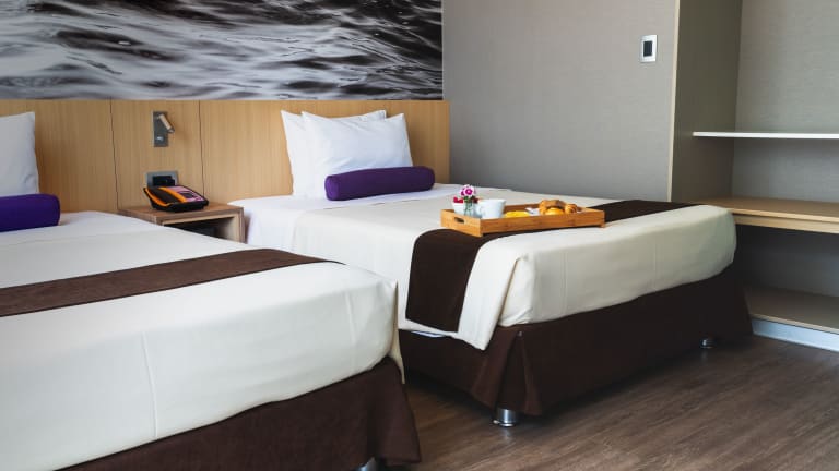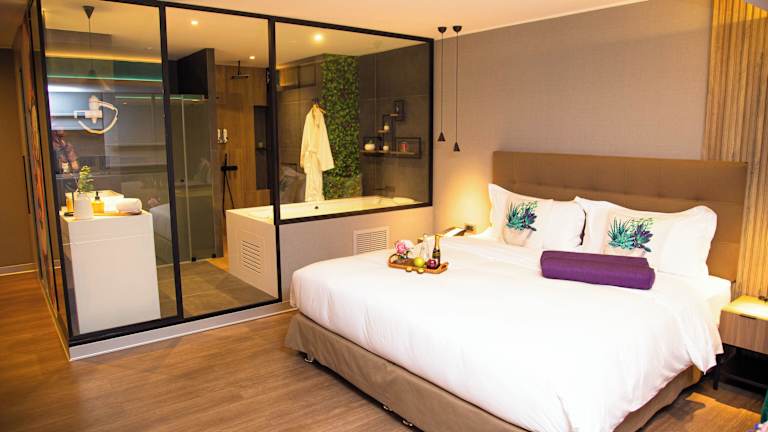Die klimatisierten Zimmer des Hotels sind mit einem Doppelbett, einem Schreibtisch, einem Schrank, einem Safe, einer Minibar und einem Flachbildschirm-TV ausgestattet. Die Badezimmer verfügen über eine Dusche und eine Badewanne, sowie über Kosmetikartikel und einen Haartrockner. WLAN ist in allen Zimmern kostenfrei verfügbar.