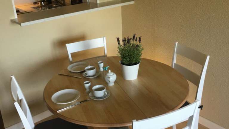 In der Ferienwohnung können Sie Ihre eigenen Mahlzeiten zubereiten, da eine voll ausgestattete Küche vorhanden ist. Alternativ können Sie auch die Restaurants in der Umgebung erkunden und lokale Spezialitäten genießen.