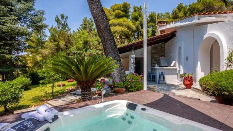 Sani Beach, in der Nähe des Strandes Sani Club Beach, 1,4 km entfernt. Die Villa ist etwa 70 km vom Flughafen Thessaloniki entfernt. Die Umgebung bietet Möglichkeiten zum Radfahren sowie Zugang zu Sehenswürdigkeiten wie dem Anthropologischen Museum & Höhle von Petralona, das 42 km entfernt ist.