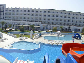 Das Hotel Palmyra Holidays Resort & SPA gehört zu die Kette BLUE STAR HOTELS, liegt in der Touristischen Area von Skanes – Monastir, 4 Km vom Flughafen Monastir entfernt. Das 3 Sternen + Hotel, total renoviert, liegt Direkt zum Meer, es besteht auf 410 Zimmern, WLAN, Anfangshall, verschiedenen Bars und Restaurant, 7 Rutschen für Kindern und Erwachsenen, 4 Schwimmbäder, 1 Hallenbad, SPA Center, Tagungsraum, Parkplatz, Animation Programme Tagsüber und Abend,