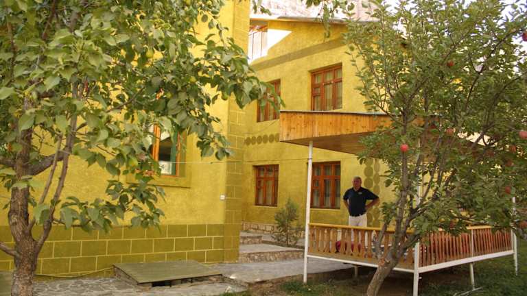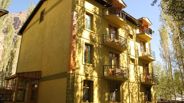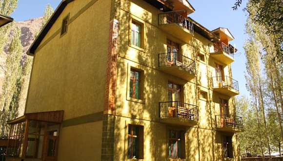 Das Hotel Pamir Alibaba befindet sich in Khorog und bietet einen malerischen Blick auf die umliegenden Berge.