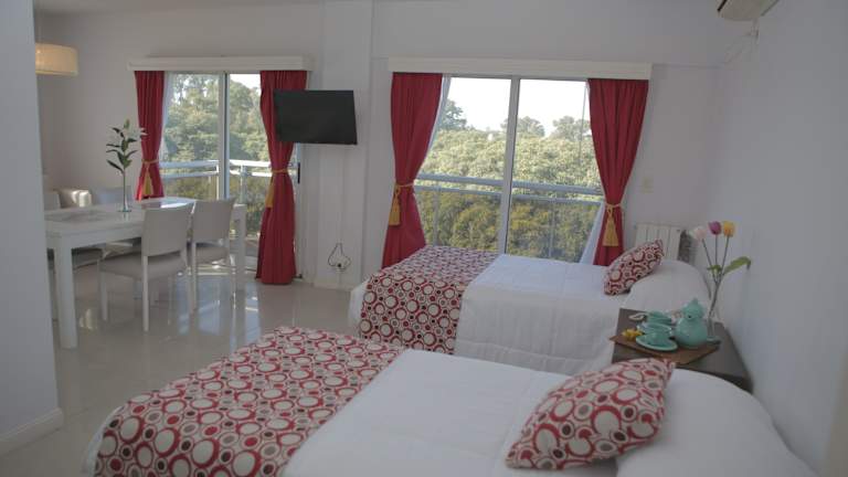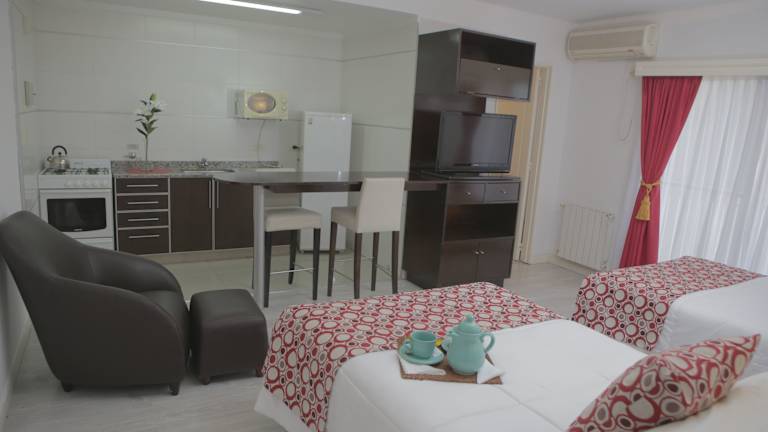 Die Zimmer und Apartments im Pampa Plaza Hotel sind geräumig und modern eingerichtet. Sie verfügen über geschmackvolle Holzböden und stilvolle Möbel. Jedes Zimmer verfügt über eine Küche, eine amerikanische Frühstücksbar, Klimaanlage und einen eigenen Balkon mit Blick auf den Pool. Die Zimmer bieten Ihnen somit allen Komfort, den Sie für einen angenehmen Aufenthalt benötigen.
