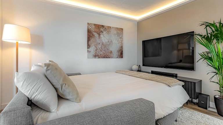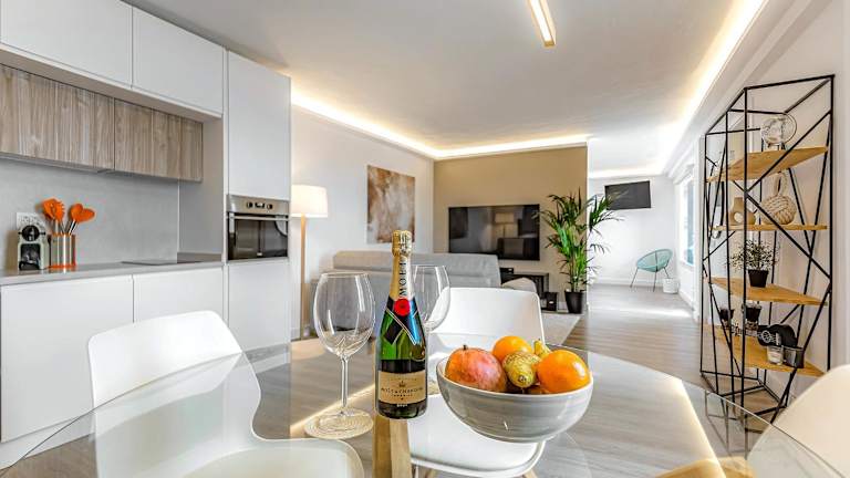 Die Ferienwohnung umfasst 1 Schlafzimmer, ein Wohnzimmer und eine voll ausgestattete Küche mit Kühlschrank und Kaffeemaschine. Zudem ist ein Badezimmer mit Dusche und Whirlpool vorhanden. Handtücher und Bettwäsche werden bereitgestellt. Die Unterkunft ist klimatisiert.