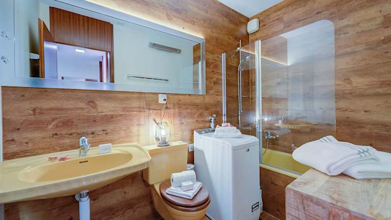 Die Unterkunft verfügt über zwei Schlafzimmer sowie zwei Badezimmer. Zur Ausstattung gehören Bettwäsche, Handtücher, ein Flachbild-TV und ein Essbereich. Die voll ausgestattete Küche ermöglicht eine eigenständige Zubereitung von Speisen. Zudem steht eine Terrasse mit einem Blick auf die Berge zur Verfügung.