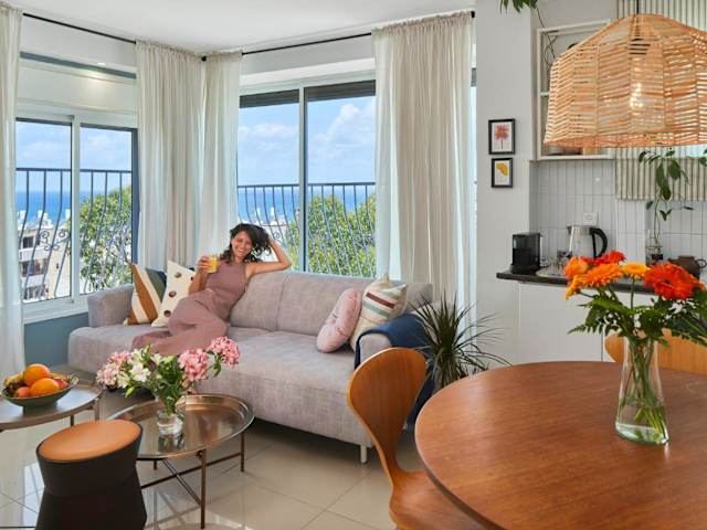Panorama Sea View! Chic Design Gem ist eine Ferienwohnung mit einem modernen und eleganten Design. Die Unterkunft bietet Übernachtungsmöglichkeiten mit kostenlosem WLAN, Klimaanlage und einem eigenen Strandbereich. Bitte beachten Sie, dass Feiern wie Junggesellenabschiede nicht gestattet sind. Das Hotel wird von einem privaten Gastgeber betrieben und hat Richtlinien für den Check-in und Check-out sowie Mindestalter für Gäste.