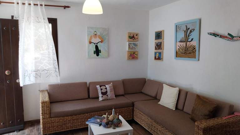 Das klimatisierte Ferienhaus im Panorama Studio Afetes bietet 1 Schlafzimmer, ein gemütliches Wohnzimmer, eine voll ausgestattete Küche mit Kühlschrank und Kaffeemaschine sowie ein Badezimmer mit Dusche. Handtücher und Bettwäsche werden gestellt, sodass Sie sich um nichts kümmern müssen. Genießen Sie den Meerblick vom Balkon aus und nutzen Sie die Terrasse, um sich zu entspannen.