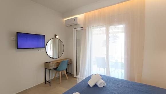 Die Panorama View bietet Unterkünfte im ionischen Stil zur Selbstverpflegung. Die Studios und Apartments sind einfach eingerichtet und verfügen über private Balkone mit Blick auf den Garten oder das Meer.
