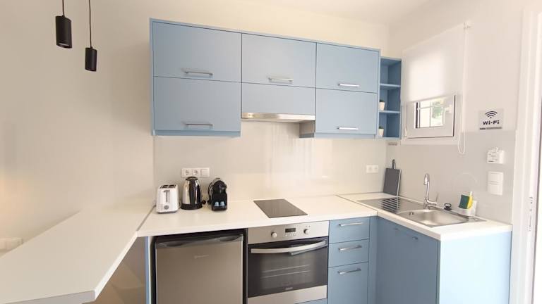 Die Studios und Apartments verfügen über eine Kochnische mit einem Wasserkocher und einem Minikühlschrank, einen TV sowie ein eigenes Bad mit einer Badewanne oder Dusche. Die Zimmer öffnen sich auf einen privaten Balkon.