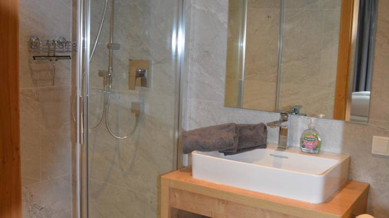 Die Ferienwohnung bietet einen Balkon mit Bergblick und verfügt über zwei Schlafzimmer, ein Wohnzimmer, einen Flachbild-TV sowie eine gut ausgestattete Küche, die mit einem Kühlschrank und einem Geschirrspüler ausgestattet ist. Des Weiteren gibt es zwei Badezimmer mit einer Dusche. Handtücher und Bettwäsche werden bereitgestellt.