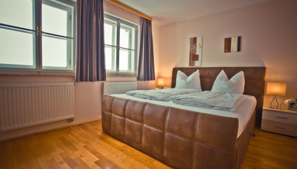 Alle unsere komfortablen Zimmer wurden im Frühjahr 2021 modernisiert und verfügen über ein 180 x 200 cm Boxspringbett, Kochnische mit Equipment, Kühlschrank, ausziehbarer Schlafcouch, 32" - TV's, Internationale TV-Sender mit gratis Pay-TV, schnelles WiFi und Nespresso-Maschine! Auf Wunsch können wir Ihnen gerne bei Ihrer Ankunft bereits ein Baby- oder Zustellbett bereit stellen. Bettwäsche, Handtücher, Toilettenartikel sind im Preis inkludiert und unser Zimmerservice bettet jeden Tag auf und reinigt. Alle 3 Tage wird Ihre Bettwäsche gewechselt.