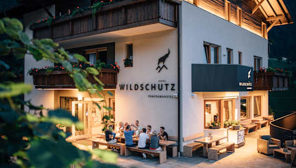 „Zu Gast in den Bergen. In unserem familiär geführten Hotel laden wir Sie ein, das Frühstück auf unserer neuen Panoramaterrasse zu genießen – mit einem herrlichen Blick in die Berge. Auch dienstags und freitags abends verwöhnen wir Sie mit saisonalen Gerichten von unserer Tageskarte. Tägliche Geheimtipps für Wanderfreudige sind natürlich enthalten. Wir achten auf unsere Umwelt. Schon seit über 20 Jahren heizen wir mit Hackschnitzeln und seit 15 Jahren nutzen wir auch die Kraft der Sonne, wodurch wir mehr als die Hälfte des verbrauchten Stroms selbst produzieren!“
