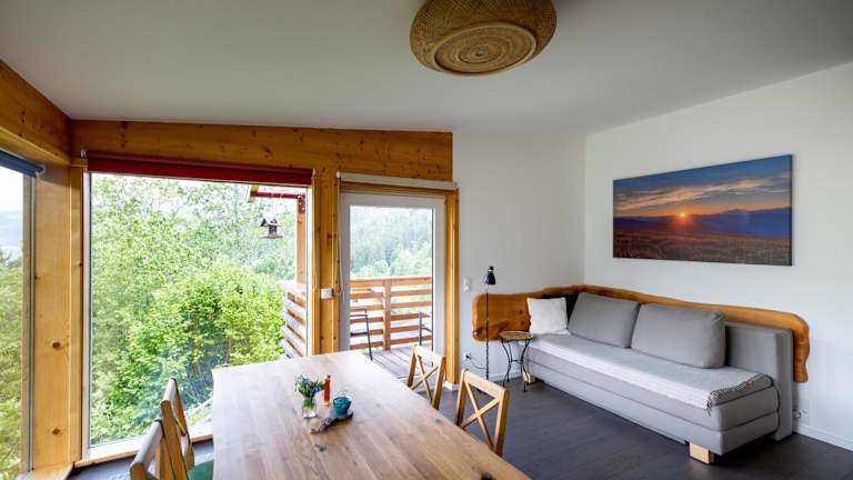 Das Panorama Apartment Bauernhof Mandl bietet ein gemütliches und gut ausgestattetes Apartment für Ihren Aufenthalt. Das Apartment verfügt über ein komfortables Wohnzimmer mit einer Küchenzeile, die mit einem Essbereich und einem Kühlschrank ausgestattet ist. Ein Flachbild-Sat-TV sorgt für Unterhaltung und ein Balkon bietet einen herrlichen Blick auf die Umgebung. Das Apartment verfügt über ein Schlafzimmer mit einem bequemen Bett, ein Schlafsofa im Wohnzimmer und ein Badezimmer mit einer Dusche und einem Haartrockner. WLAN ist in der gesamten Unterkunft kostenlos verfügbar.