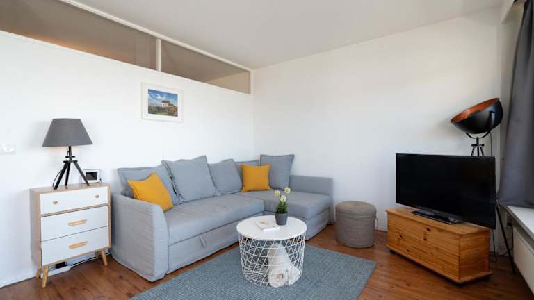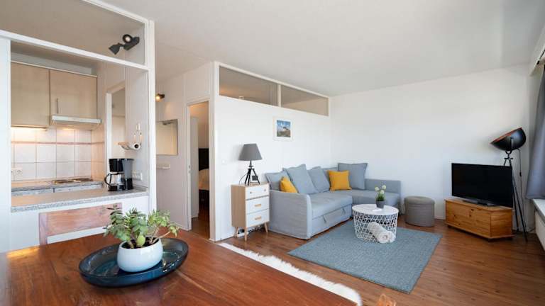 Die Ferienwohnung umfasst ein Schlafzimmer, ein Badezimmer mit Dusche sowie eine gut ausgestattete Küche mit Kühlschrank und Ofen. Ein TV ist ebenfalls vorhanden. Bitte beachten Sie, dass Bettwäsche und Handtücher im Preis nicht enthalten sind.