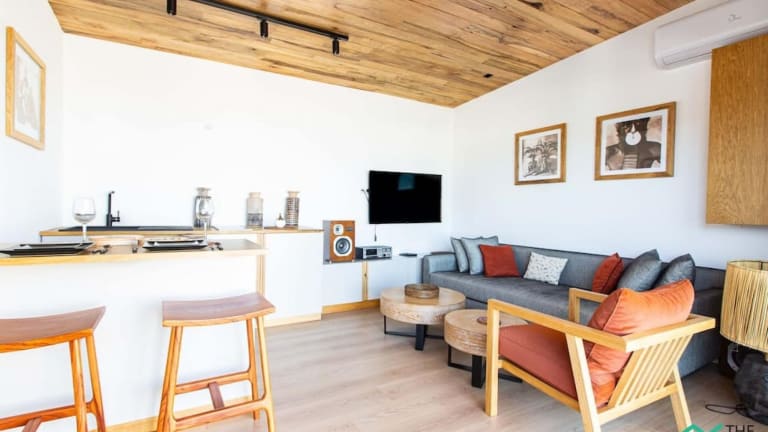 Das klimatisierte Apartment verfügt über ein separates Schlafzimmer, eine voll ausgestattete Küche und ein Badezimmer. Handtücher und Bettwäsche werden gestellt, um Ihren Aufenthalt so angenehm wie möglich zu gestalten. Das Apartment bietet Ihnen alle Annehmlichkeiten, die Sie für einen komfortablen Aufenthalt benötigen.