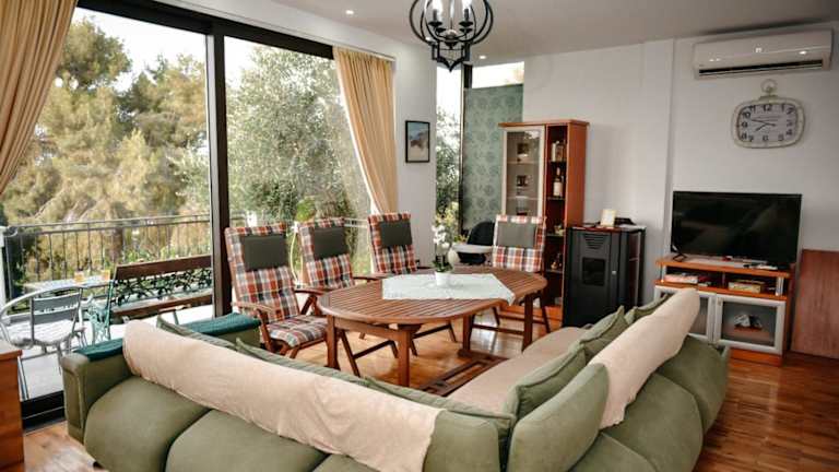 Das klimatisierte Ferienhaus im Panoramic View over Shkodra's Lake - Serena Home bietet 2 Schlafzimmer, ein geräumiges Wohnzimmer und eine voll ausgestattete Küche mit Kühlschrank und Kaffeemaschine. Es gibt auch 2 Badezimmer mit Bidet und Dusche. Für Ihre Unterhaltung steht ein Flachbild-Kabel-TV zur Verfügung.