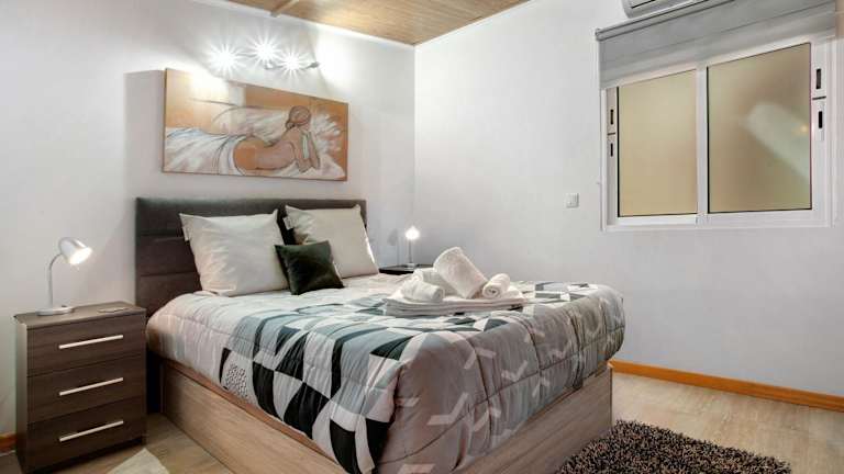 Die Ferienwohnung verfügt über 2 Schlafzimmer und 1 Badezimmer. Zur Ausstattung gehören Bettwäsche, Handtücher, ein TV mit Kabelkanälen sowie eine voll ausgestattete Küche. Zudem gibt es eine Veranda bzw. ein Patio mit Stadtblick.