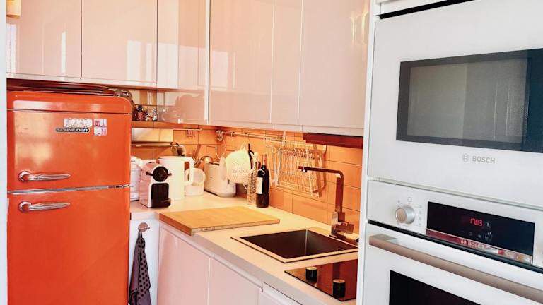 Die Ferienwohnung besteht aus einem Schlafzimmer und einem Wohnzimmer. Die voll ausgestattete Küche ist mit einem Kühlschrank und einer Kaffeemaschine ausgestattet. Des Weiteren stehen zwei Badezimmer mit Dusche und Haartrockner zur Verfügung. Handtücher und Bettwäsche werden gestellt. Zu den zusätzlichen Annehmlichkeiten zählen kostenloses WLAN, ein TV, Heizung, ein Aufzug sowie Nichtraucherzimmer.