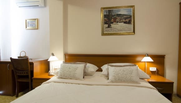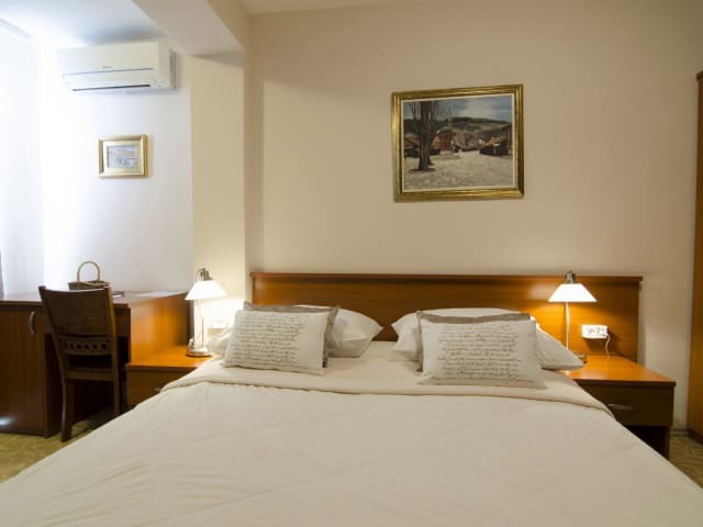Willkommen im familiengeführten Pansion Villa Harmony im Stadtteil Vraca, einem der schönsten und ruhigsten Viertel von Sarajevo. Genießen Sie den wunderbaren Ausblick auf die Stadt und entspannen Sie sich in geräumigen, modernen und komfortablen Zimmern. Freuen Sie sich auf Annehmlichkeiten wie einen LCD-TV, Klimaanlage, kostenloses WLAN und einen 24-Stunden-Service. Jeden Morgen erwartet Sie ein leckeres Frühstücksbuffet und für Ihren Komfort stehen kostenfreie, videoüberwachte Privatparkplätze zur Verfügung. Das Hotel bietet auch einen kostenlosen Begrüßungsdrink bei der Ankunft sowie kostenlose Stadtpläne.