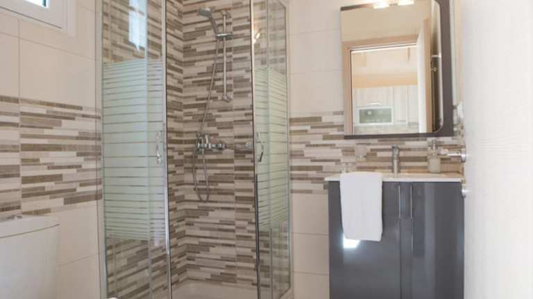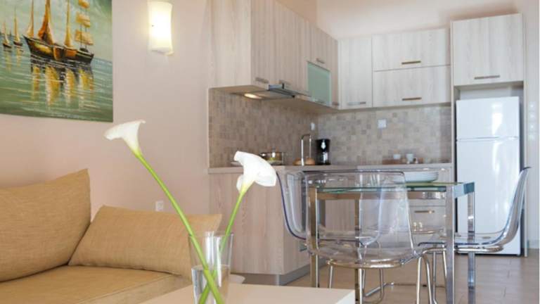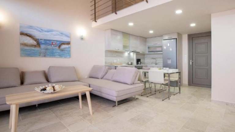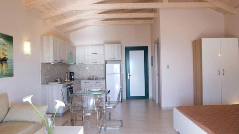Die Zimmer im Hotel Pantheon Villas sind komfortabel eingerichtet und verfügen über eine Küche und ein eigenes Badezimmer. Zur Ausstattung gehören auch Klimaanlage, Balkon oder Terrasse und Meerblick.