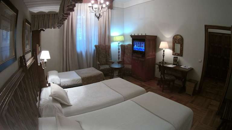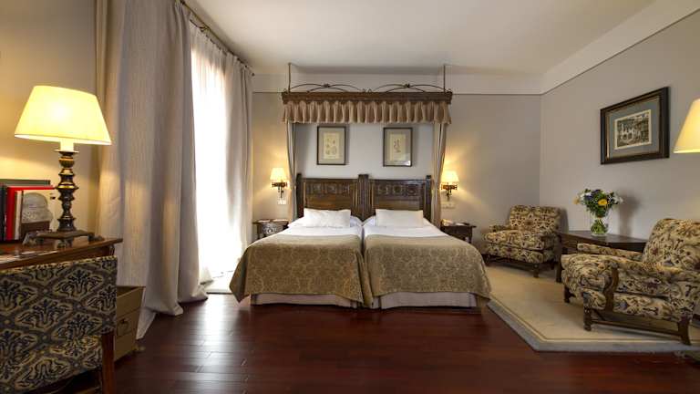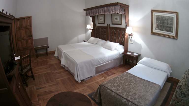 Das Parador de Santiago - Hostal Reis Catolicos ist ein beeindruckendes Hotel im Herzen von Santiago de Compostela. Das historische Gebäude aus dem 15. Jahrhundert bietet eine einzigartige Atmosphäre und verbindet traditionelle Elemente mit modernem Komfort. Die geräumigen Zimmer sind im klassischen Stil eingerichtet und bieten Himmelbetten sowie kostenfreies WLAN. Die hoteleigenen Restaurants verwöhnen Sie mit mediterranen und galizischen Spezialitäten. Genießen Sie die entspannte Atmosphäre in den beeindruckenden Kreuzgängen und entspannen Sie im Garten oder am Pool. Die Lage des Hotels ist perfekt, um die Altstadt von Santiago de Compostela zu erkunden und die Sehenswürdigkeiten der Stadt zu besichtigen.