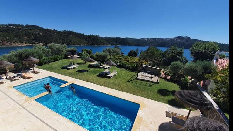 Das Paraíso Azul in Eira do Chão bietet eine ideale Lage für einen erholsamen Urlaub. Die klimatisierten Unterkünfte sind komfortabel und bieten einen atemberaubenden Blick auf den Fluss und den See. Der Zugang zum Garten mit Kinderspielplatz sorgt für Unterhaltung für die ganze Familie. Die voll ausgestattete Küche ermöglicht es Ihnen, Ihre eigenen Mahlzeiten zuzubereiten, und die Grillmöglichkeiten bieten eine weitere Option für Mahlzeiten im Freien. Die Nähe zu Sehenswürdigkeiten wie der Burg Almourol und der Capela de Nossa Senhora da Conceicao macht das Paraíso Azul zu einem idealen Ausgangspunkt für Ausflüge.