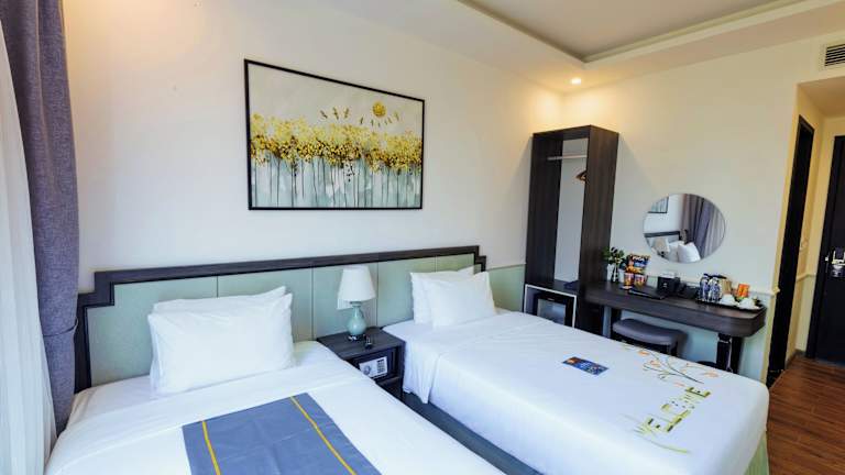 Die klimatisierten Zimmer im Paralia Khem Beach Phu Quoc Hotel sind komfortabel eingerichtet und verfügen über Annehmlichkeiten wie einen Schreibtisch, einen Wasserkocher, eine Minibar, einen Safe, einen Flachbild-TV und ein eigenes Badezimmer mit Dusche. Jedes Zimmer ist mit hochwertiger Bettwäsche und Handtüchern ausgestattet, um einen erholsamen Aufenthalt zu gewährleisten.