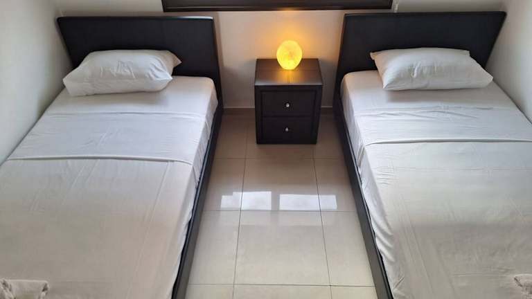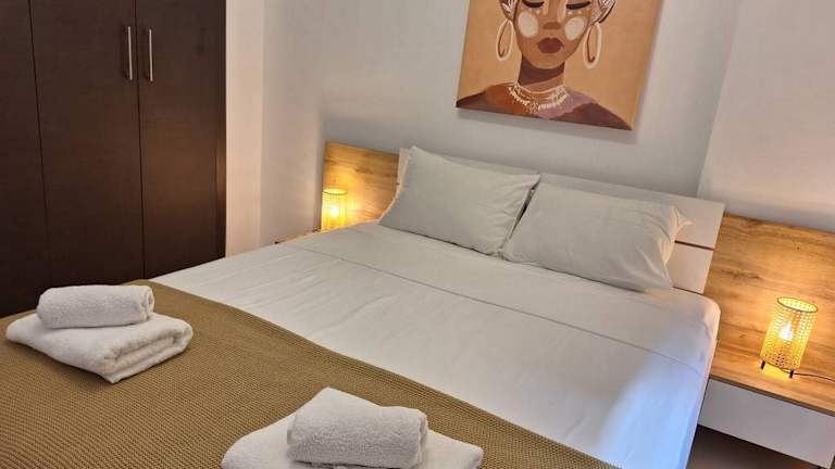 Die klimatisierte Ferienwohnung umfasst zwei Schlafzimmer, ein Wohnzimmer und eine voll ausgestattete Küche mit Kühlschrank und Kaffeemaschine. Sie verfügt über zwei Badezimmer mit Dusche und kostenlosen Pflegeprodukten. Handtücher und Bettwäsche sind ebenfalls verfügbar. Die Wohnung bietet schallisolierte Zimmer und ermöglicht einen Zugang über einen Aufzug.
