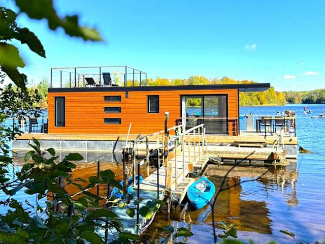 Parc de l'Île Melville 1 - Maison flottante ist eine Unterkunft auf einem Boot mit Seeblick und Balkon. Die Unterkunft bietet eine ruhige Atmosphäre und ist ideal für Gäste, die eine einzigartige Übernachtungsmöglichkeit suchen.