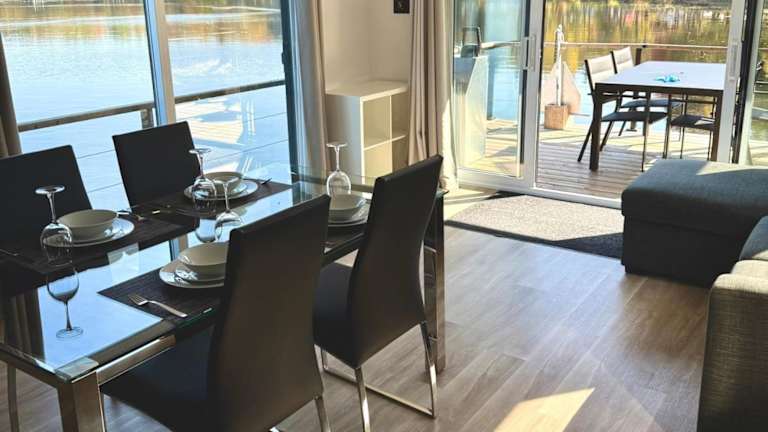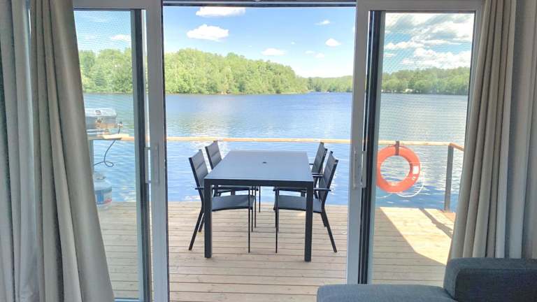 Das Boot verfügt über Klimaanlage, ein Schlafzimmer, ein Wohnzimmer sowie eine voll ausgestattete Küche mit Kühlschrank und Kaffeemaschine. Des Weiteren umfasst die Ausstattung ein Badezimmer mit Dusche und Haartrockner. Handtücher und Bettwäsche werden bereitgestellt. Eine Terrasse ist ebenfalls vorhanden.