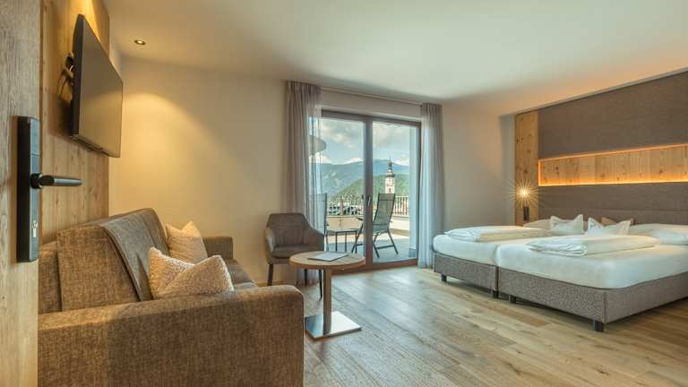 5 Gehminuten vom Zentrum, am Sonnenhang, inmitten von Wiesen mit einmaligem Ausblick auf Kastelruth und die umliegenden Berge. Skipisten, Langlaufloipen und Eislaufplatz in unmittelbarer Nähe des Hauses. Familiäre, kinderfreundlich Atmosphäre, gediegene neue Einrichtung im Südtiroler Stil, anspruchsvolle Räumlichkeiten für Genuss, Spiel, Spaß, Relax und Erholung. Gepflegte internationale und bürgerliche Küche. Auch Zimmer mit Frühstück möglich. Im Preis inbegriffen sind außerdem Hotelgarage, Hallenbad, Fitnessraum, Spielsaal, Kinderstube sowie Sauna und Dampfbad und Infrarotkabine.