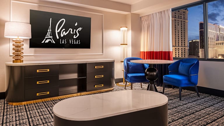 Die Zimmer im Paris Las Vegas Hotel & Casino sind elegant im französischen Stil gestaltet. Jedes Zimmer verfügt über ein helles und komfortables Ambiente mit einem Marmorbad. Zur Ausstattung gehören ein Bügelbrett, ein Bügeleisen, ein Flachbild-TV, ein Haartrockner, ein Schreibtisch, ein Telefon, ein Wecker und ein Safe. Für zusätzlichen Komfort steht ein Zimmerservice zur Verfügung.