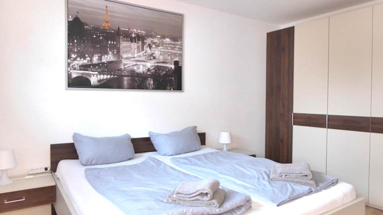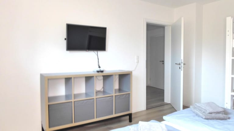 Die Ferienwohnung umfasst zwei Schlafzimmer und ein Wohnzimmer mit einem Satelliten-Flachbild-TV. Die voll ausgestattete Küche ist mit einem Kühlschrank ausgestattet. Handtücher und Bettwäsche werden zur Verfügung gestellt. Es sind Allergikerfreundliche Zimmer verfügbar.
