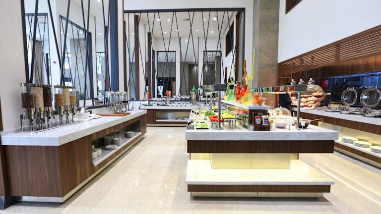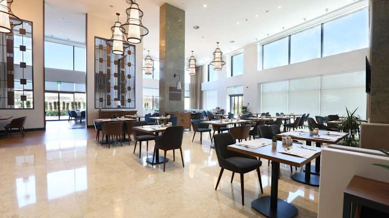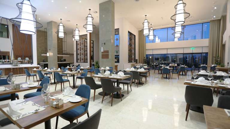 Die Verpflegungsmöglichkeiten umfassen ein Restaurant, in dem die Gäste Speisen genießen können.