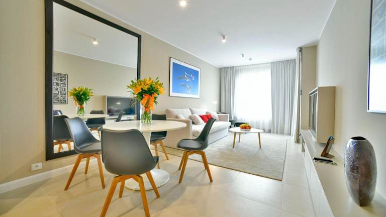 Das Hotel verfügt über ein hauseigenes Spa und Wellnesscenter mit einem Innenpool, einem Whirlpool, einem Fitnessraum und einer Sauna. Diese Einrichtungen können Sie von 09:00 bis 21:00 Uhr kostenlos nutzen. Es gibt auch einen saisonalen Außenpool, in dem Sie sich an warmen Tagen erfrischen können. Für Kinder gibt es zwei Spielplätze, auf denen sie sich austoben können. Neben der Unterkunft verläuft ein Fahrradweg am Meer entlang, der sich ideal zum Fahrradfahren und Spazierengehen eignet.