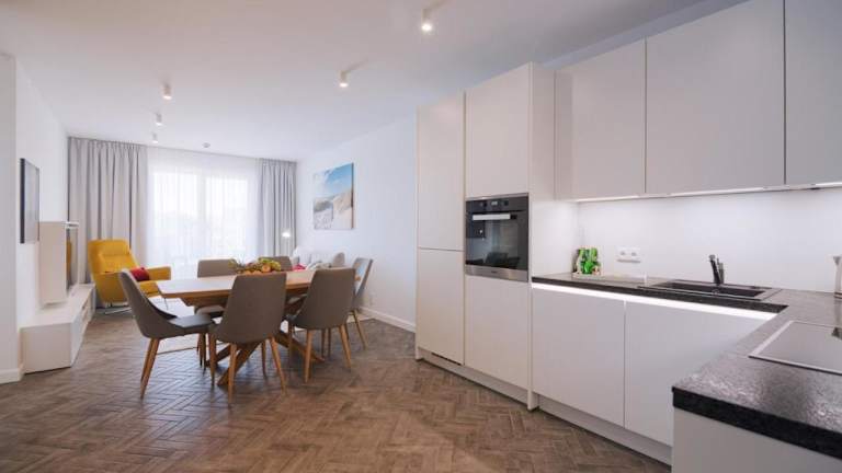 Die Wohneinheiten im Park Design - Apartments M&M (Polanki Park) sind modern und stilvoll eingerichtet. Jedes Apartment verfügt über eine Sonnenterrasse, einen geräumigen Wohn- und Essbereich sowie eine voll ausgestattete Küche mit Geschirrspüler, Kühlschrank, Mikrowelle und Kaffeemaschine. Einige Apartments bieten auch die Möglichkeit, Haustiere mitzubringen. Handtücher, Bademäntel und kostenfreie Pflegeprodukte stehen Ihnen im eigenen Badezimmer zur Verfügung.
