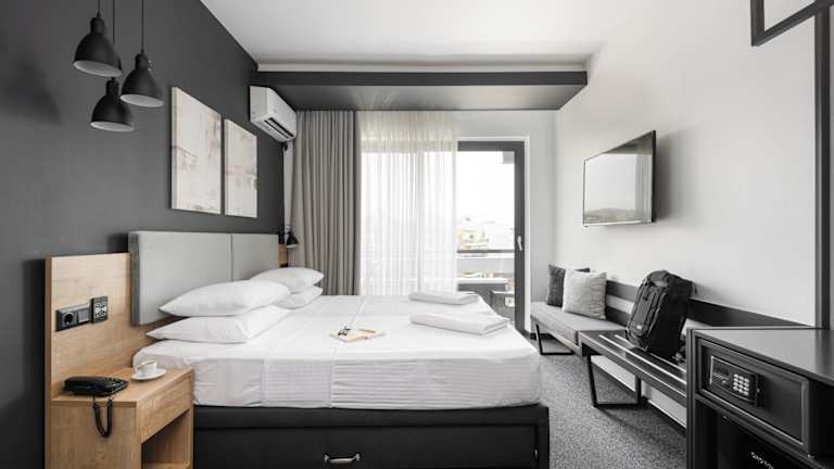 Das Park Hotel verfügt über 56 Zimmer, darunter Einzel- und Doppelzimmer, die sich auf 7 Etagen verteilen und bequem mit dem Aufzug erreichbar sind. Alle Zimmer sind klimatisiert und verfügen über einen Balkon und einen Flachbild-TV. Zur Ausstattung gehören auch ein Safe, ein Schreibtisch und ein Kühlschrank. WLAN ist in allen Bereichen des Hotels kostenfrei verfügbar.