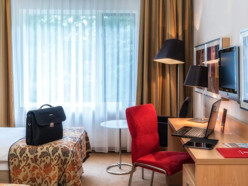 Das Hotel verfügt über 97 Nichtraucherzimmer, die über einen Aufzug erreichbar sind. Die Zimmer sind komfortabel eingerichtet und bieten Annehmlichkeiten wie eine Klimaanlage, eine Minibar und einen Schreibtisch. In den Badezimmern finden Sie eine Dusche oder eine Badewanne sowie einen Haartrockner und Pflegeprodukte. Es stehen auch rollstuhlgerechte Zimmer zur Verfügung.