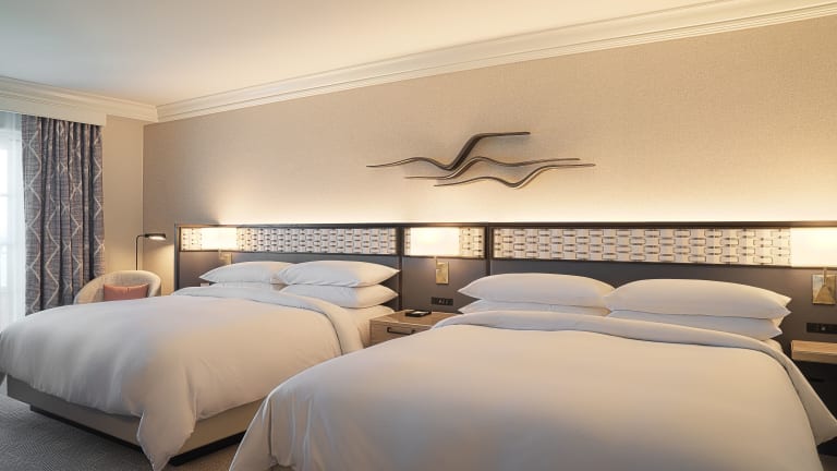 Die Zimmer sind klimatisiert und verfügen über Teppichböden, ein einzelnes Doppelbett oder Kingsize-Bett, Safe, Minibar, Kühlschrank, Tee-/Kaffeemaschine, Internetzugang, TV-Gerät, Föhn sowie Balkon oder Terrasse. Barrierefreie Zimmer sind ebenfalls verfügbar.
