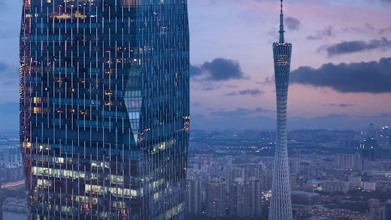 Das Hotel liegt im Zentrum des Geschäftsviertels Zhujiang New Town CBD in Guangzhou. Der internationale Flughafen Baiyun ist in etwa 20 Fahrminuten erreichbar. In der Nähe befinden sich das Generalkonsulat der Vereinigten Staaten sowie das Opernhaus von Guangzhou. Der U-Bahnhof Zhujiang New Town ist rund 10 Gehminuten entfernt.