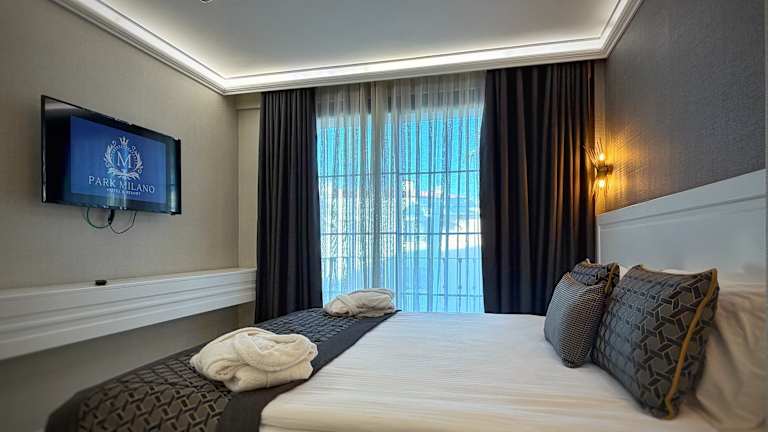 Die Wohneinheiten im Park Milano Hotel sind mit Klimaanlage, einem Flachbild-TV mit Satellitenkanälen, einer Minibar, einem Wasserkocher, einer Dusche, kostenlosen Pflegeprodukten und einem Kleiderschrank ausgestattet. Einige Zimmer bieten Stadtblick und alle Zimmer verfügen über einen Balkon. Bettwäsche und Handtücher sind ebenfalls in der Unterkunft vorhanden.