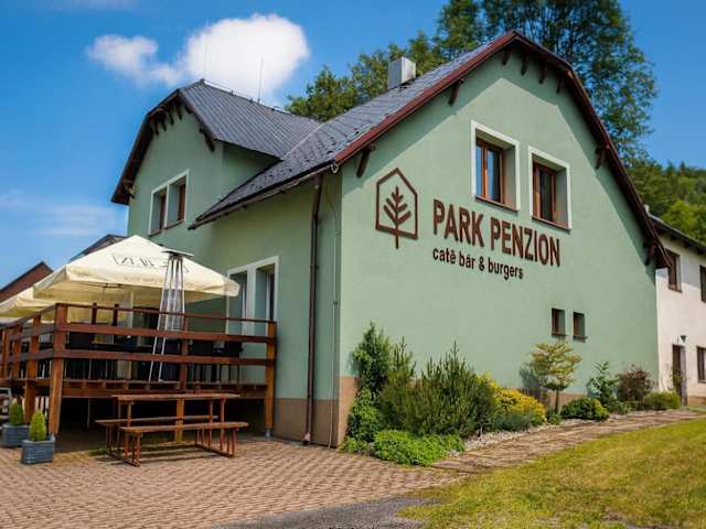 Die Unterkunft Park Penzion bietet Übernachtungsmöglichkeiten in einer Umgebung mit einem Garten, einem kostenlosen Privatparkplatz, einer Terrasse und einem Restaurant. Zu den weiteren Einrichtungen zählt ein Abstellraum für Skier sowie eine Bar. Kostenfreies WLAN ist im gesamten Gebäude verfügbar. Ein Kinderspielplatz steht ebenfalls zur Verfügung.
