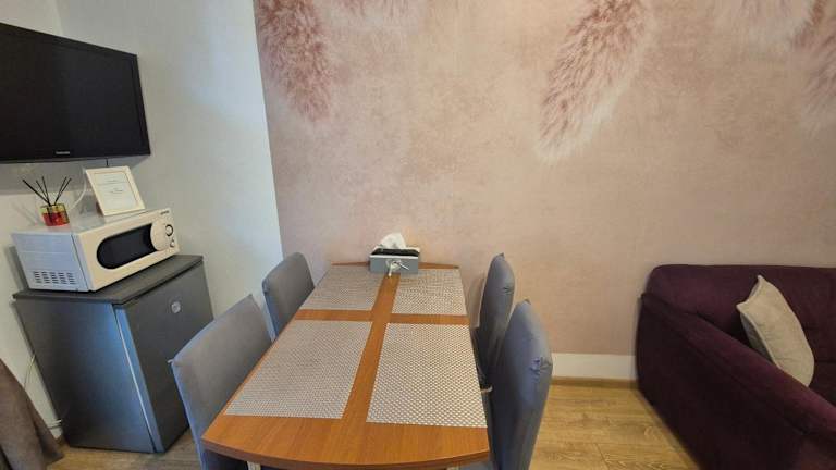 Das Apartment in der Park Residence bietet alles, was Sie für einen angenehmen Aufenthalt benötigen. Es verfügt über ein gemütliches Schlafzimmer, in dem Sie sich nach einem langen Tag ausruhen können. Das Wohnzimmer ist der perfekte Ort, um sich zu entspannen und den Flachbild-TV zu genießen. Die Küchenzeile ist gut ausgestattet mit einem Kühlschrank und einem Backofen, so dass Sie Ihre eigenen Mahlzeiten zubereiten können. Das Apartment verfügt auch über ein Badezimmer mit Dusche und bietet Handtücher und Bettwäsche für Ihren Komfort.