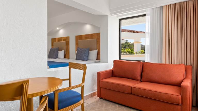 Die Zimmer sind klimatisiert und verfügen über eine Vielzahl von Annehmlichkeiten, darunter ein Kingsizebett, ein Sofabett, ein Safe, eine Minibar sowie ein Kühlschrank und eine Mikrowelle. Jedes Zimmer bietet zudem einen Fernseher, kostenfreies WLAN und ein Badezimmer mit Dusche und Badewanne. Viele Zimmer bieten einen Meerblick, und Familienzimmer sind auf Anfrage verfügbar.
